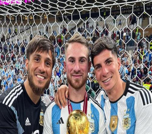 阿根廷夺得世界杯后格策抱着儿子激动庆祝