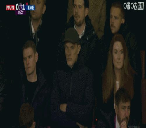 第41分钟,镜头给到场边,图赫尔看台观战