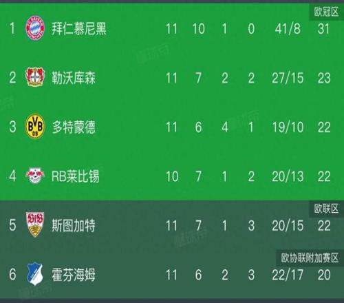 德甲积分榜,拜仁让二追六,8分领跑,多特33遭绝平,仍居第三
