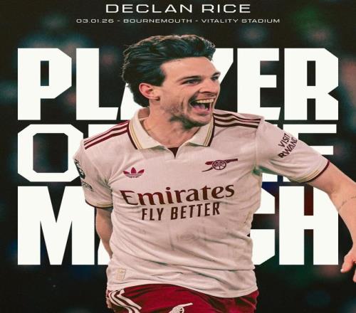 北京时间1月4日凌晨,英超联赛第20轮,阿森纳在客场3-2战胜伯恩茅斯。此前,阿森纳官方宣布,中场球员赖斯当选为此役队内最佳球员。
